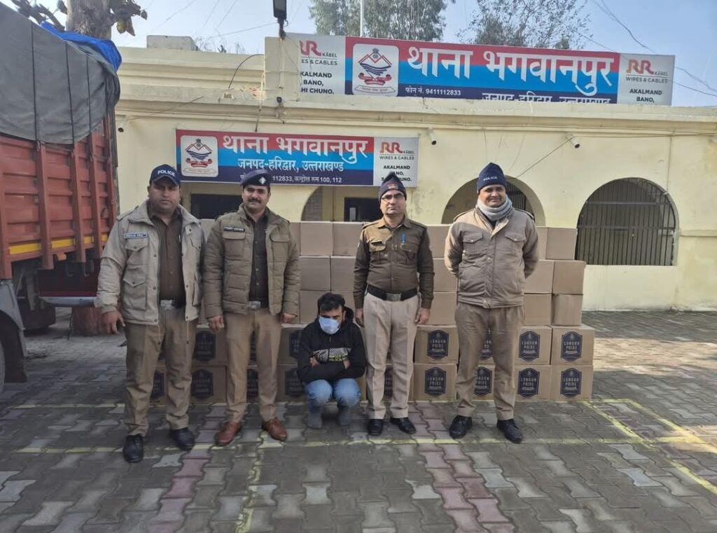 भगवानपुर। नगर निकाय चुनाव को सकुशल संपन्न कराने व अवैध मादक पदार्थो की तस्करी रोकने के लिए वरिष्ठ पुलिस अधीक्षक के निर्देश पर पूरे जनपद में अन्तर्राज्यीय/ अन्तर्जनपदीय बॉर्डर सहित विभिन्न स्थानों पर थाना पुलिस टीमें लगातार सघन चैकिंग अभियान चला रही है। ताजा घटनाक्रम भगवानपुर क्षेत्र का है जहां स्थानीय पुलिस टीम ने दिनांक 19/1/2025 को चेकिंग के दौरान सियान कम्पनी के पास कैन्टक आयशर रंग लाल बिना नम्बर से एक व्यक्ति विक्रम सिंह पुत्र प्रेमचन्द निवासी जयगढ़ थाना चौपाल शिमला हिमाचंल प्रदेश को हिरासत में लेते हुए उसके कब्जे से 150 पेटी अंग्रेजी शराब (75 पेटी लन्दन प्राईड व्हिस्की व 75 पेटी काउन्टर गोल्ड व्हिस्की) के साथ आरोपी को दबोचा गया। पूछताछ करने पर आरोपी ने बताया गया कि यह शराब अलग-अलग जगह इकट्ठा कर नगर निकाय चुनाव मे वोटरो को लुभाने के लिए ले जायी जा रही थी । बरामदगी के आधार पर पकड़े गए तस्कर के खिलाफ थाना भगवानपुर पर मु0अ0सं0 19/2025, धारा 60/63/72 आबकारी अधिनियम पंजीकृत कर आवश्यक वैधानिक कार्रवाई की गई l विक्रम सिंह पुत्र प्रेमचन्द निवासी जयगढ़ थाना चौपाल शिमला हिमाचल प्रदेश का चालान कर दिया गया है।