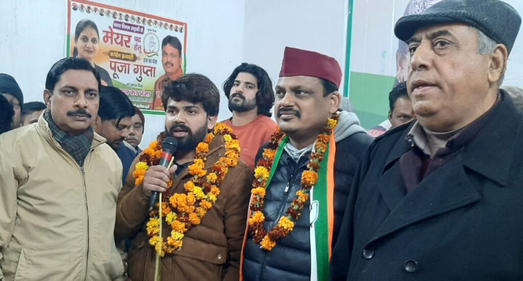 और उन्हें पिछले दिनों ही प्रदेश के मुख्यमंत्री द्वारा बेस्ट मैनेजमेंट के लिए बेस्ट अवार्ड देकर सम्मानित किया गया था।उन्होंने कहा कि अगर क्षेत्र की जनता का उनके धर्मपत्नी को आशीर्वाद मिला तो बोर्ड चलाने में परिपूर्ण है और नगर निगम को बेहतर तरीके से चलाएंगी।वरिष्ठ कांग्रेस नेता हाजी सलीम खान ने कहा कि पठानपुरा के निवासी मेयर प्रत्याशी पूजा गुप्ता के साथ हैं तथा मुस्लिम समुदाय कांग्रेस प्रत्याशी के पक्ष में अपना विश्वास व्यक्त करेगा।