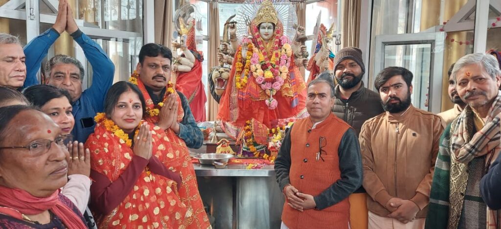 रुड़की।कांग्रेस के प्रदेश महामंत्री सचिन गुप्ता तथा मेयर प्रत्याशी पूजा गुप्ता ने दुर्गा मंदिर पहुंचकर पूजा-अर्चना की तथा मां भगवती का आशीर्वाद लिया।पंडित राजकुमार शर्मा ने पूजा-अर्चना कर उनकी मनोकामना कर पूर्ण हो,इसके लिए अपना आशीर्वाद दिया।