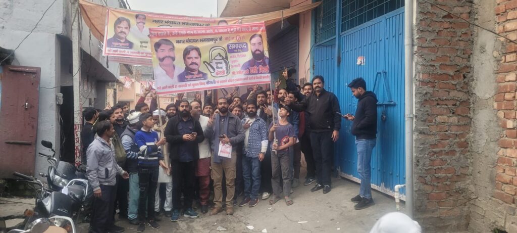 भगवानपुर ।नगर निकाय चुनाव दिन प्रतिदिन अपने चरम पर चढ़ता जा रहा है। नगर पंचायत भगवानपुर के वार्ड नंबर 6 से सभासद प्रत्याशी मौ. हसीन उर्फ हसी मिर्जा ने अपने समर्थकों के साथ डोर-टू-डोर धुआंधार प्रचार कर चुनाव चिन्ह “केतली” के पक्ष में वोट मांगे।