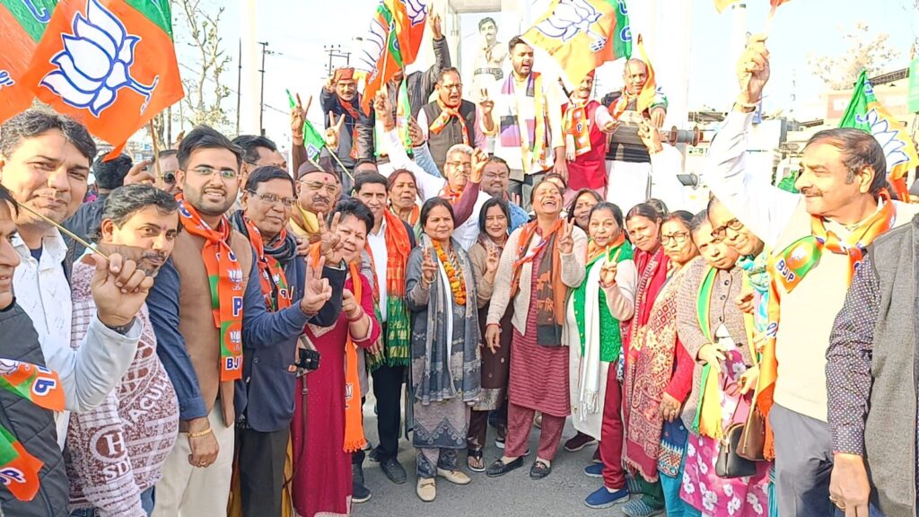 रुड़की।दिल्ली में भाजपा की शानदार जीत पर भाजपा जिला कार्यालय पर जश्न का माहौल है।बड़ी संख्या में भाजपा कार्यकर्ताओं ने ढौल-नगाड़ों के साथ आतिशबाजी की और मिठाइयां बांटीं।इस दौरान भाजपा पदाधिकारियों ने भाजपा जिला कार्यालय से लेकर सिविल लाइन स्थित झंडा चौक तक मार्च भी निकाला।भाजपा जिलाध्यक्ष शोभाराम प्रजापति ने कहा कि यह जीत भाजपा की नीतियों और कार्यकर्ताओं की मेहनत का परिणाम है।भाजपा की जीत से देश के विकास को नई दिशा मिलेगी और जनता की समस्याओं का समाधान होगा। नव नियुक्त रुड़की मेयरअनीता अग्रवाल ने कहा कि यह जीत भाजपा के विकासवाद पर जनता की मुहर है और यह देश के विकास के लिए एक महत्वपूर्ण कदम है।कहा कि यह जीत भाजपा की जनकल्याणकारी नीतियों की जीत है।यह प्रधानमंत्री मोदी और मुख्यमंत्री धामी की जीत है।इस अवसर पर वरिष्ठ भाजपा नेता ललित मोहन अग्रवाल,पवन तोमर, सुशील त्यागी,आदेश सैनी,पंडित दिनेश कौशिक,प्रवीण संधू,अरविंद गौतम,भीम सिंह,सोनू धीमान,चतरसेन,प्रदीप पाल,सतीश सैनी,सौरभ गुप्ता,नितिन गोयल, पंकज नंदा,विकास प्रजापति,सुशील रावत,राजपाल सिंह,सागर गोयल,संजय त्यागी,सुमित अग्रवाल, नरेश शर्मा,ठाकुर चंदन सिंह,मनोज मेहरा,भरत कपूर,मुमताज,एचएम कपूर,सरदार सतबीर,राकेश गर्ग,रिशु वर्मा,नीतू शर्मा,सीमा वर्मा,हरिमोहन गुप्ता,सुधीर त्यागी,प्रदीप सचदेवा, सुभाष सरीन,अनिल शर्मा,वरिष्ठ नेता धीर सिंह,अभिषेक चंद्रा,डॉ०राजेश चंद्र,रमेश जोशी,डॉक्टर टेक वल्लभ,आकाश जैन,संदीप वर्मा, आशीष पंडित,डॉक्टर आशुतोष शर्मा,सुधीर जाटव आदि बड़ी संख्या में कार्यकर्ता मौजूद रहे।