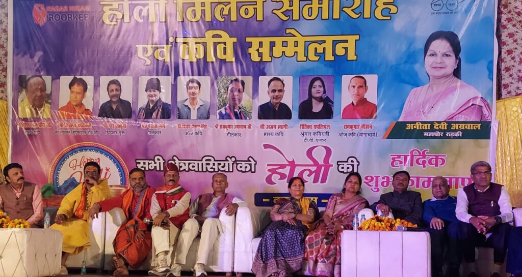 रुड़की।नगर निगम में हुए कवि सम्मेलन एवं होली मिलन समारोह में कवियों ने अपनी कविताओं के माध्यम से प्रेम और सौहार्द का संदेश दिया।कार्यक्रम का शुभारंभ मेयर अनीता अग्रवाल ने दीप प्रज्वलित कर किया।अपने सम्बोधन में उन्होंने कहा कि होली बुराई पर अच्छाई का जीत का प्रतीक है।होली के पावन पर्व पर हमें आज सभी मतभेदों को भुलाकर आपसी भाईचारा बनाए रखने का संकल्प लेना चाहिए।कहा कि नगर का विकास मिलकर किया जाएगा।