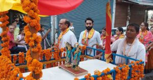 शोभायात्रा में महिलाओं द्वारा भगवान जगन्नाथ जी के जय घोष के साथ आरती की गई।बड़ी संख्या में शामिल भक्तों ने भगवान जगन्नाथ जी का गुणगान करते हुए भव्य शोभा यात्रा को नगर के सिविल लाइन मुख्य बाजार से निकाली,जहां पर नगर वासियों ने पुष्प वर्षा कर शोभा यात्रा का स्वागत किया।