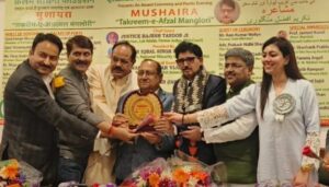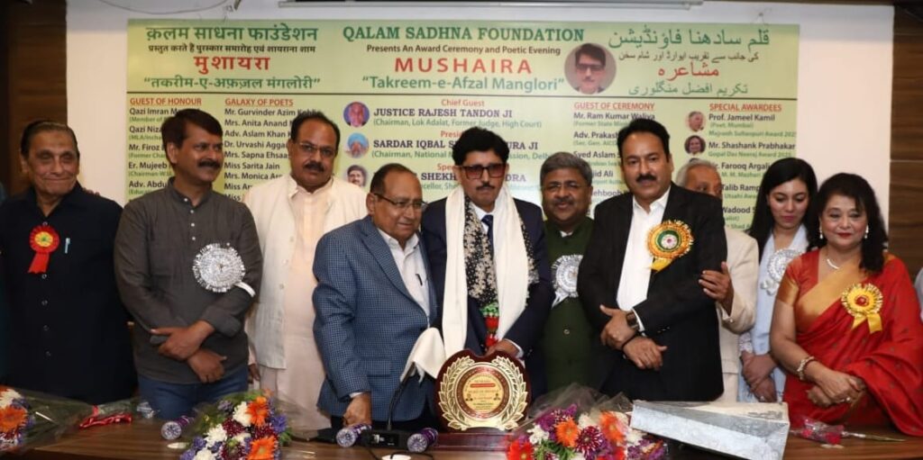 यह सम्मान मंगलौरी को उनकी साहित्य,शिक्षा,पत्रकारिता और समाजसेवा के क्षेत्रों में लगभग पैंतालीस वर्षों से किए जा रहे उनके उल्लेखनीय और बहुआयामी योगदान के लिए प्रदान किया जाएगा।इस अवसर पर समारोह अध्यक्ष के रूप में बोलते हुए कुँवर शेखर विजेंद्र ने कहा कि अफजल मंगलौरी न केवल एक उत्कृष्ट शायर हैं,बल्कि वे विचार,संवेदना और समाज के प्रति उत्तरदायित्व की जीवंत मिसाल हैं।उनकी लेखनी में जमीन की सच्चाई और आत्मा की आवाज है।विश्वविद्यालय उनके अनुभव और दृष्टिकोण को अकादमिक वातावरण से जोड़कर विद्यार्थियों को प्रेरित करना चाहता है।उन्होंने घोषणा करते हुए कहा कि अफजल मंगलौरी को यह सम्मान प्रदान करने का औपचारिक समारोह शोभित विश्वविद्यालय के आगामी विशेष कार्यक्रम में आयोजित किया जाएगा,जिसकी तिथि की घोषणा शीघ्र की जाएगी।तकरीम ए अफजल मंगलौरी समारोह के संयोजक तथा साहित्यिक संस्था कलम साधना फाउंडेशन के सरंक्षक प्रमुख व समाजसेवी मुशर्रफ अली खान ने कहा कि ये कार्यक्रम अफजल मंगलौरी को “उत्तराखंड रत्न” अवार्ड मिलने पर आयोजित किया गया,जिसमें नैनीताल हाईकोर्ट के लोक अदालत के चेयरमैन जस्टिस राजेश टण्डन,दिल्ली पुलिस के अपर कमिश्नर आदेश त्यागी,अपर जिला जज मीना खान,पूर्व राज्यमंत्री व सर्वसमाज महासंघ के राष्ट्रीय अध्यक्ष डॉ०रामकुमार वालिया,सांसद इमरान मसूद,कल्पना,इकबाल सिंह,विधायक काजी निजामुद्दीन,विधायक हथीन चौधरी इस्राइल,उत्तराखंड व्यापार मंडल के उपाध्यक्ष प्रमोद जौहर,फिल्म हीरोइन इंद्राणी पांधी,मुंबई महाराष्ट्र कॉलिज हम सुखन के अध्यक्ष प्रोफेसर जमील कामिल,मौलाना आजाद यूनिवर्सिटी हैदराबाद के पूर्व कुलाधिपति व लेखक फिरोज बख्त अहमद,सऊदी अरब धार्मिक न्यायालय के जज मौलाना एए सिद्दीकी,लेखिका इरफाना शौकत,प्रसिद्ध लेखक व कवि फारूक अर्गली,महकता आँचल के सहसम्पादक तालिब रामपुरी,डॉ० वसीम राशिद,शशांक प्रभाकर आदि ने अफजल मंगलौरी को अवार्ड,शाल,गुलदस्ता आदि पेश कर सम्मानित किया।इस अवसर पर साहित्य,कला, पत्रकारिता के क्षेत्र में दिवंगत हस्तियों के नाम पर कलम साधना फाउंडेशन की ओर से अवार्ड प्रदान किये गए।अंत में कवि सम्मेलन व मुशायरे का आयोजन किया गया,जिसमें फिल्मी गीतकार प्रदीप शर्मा खुसरो,अनिता आनन्द मुकाती,मोनिका अरोरा मंतशा,सपना एहसास,मीना खान,हशमत भारद्वाज,आरिफ देहलवी आदि ने काव्यपाठ किया।कार्यक्रम का सफल संचालन डॉ०वसीम राशिद ने किया।