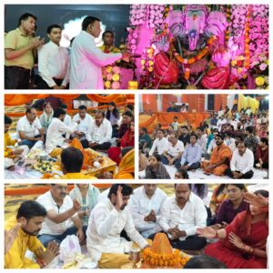 भगवान गणपति को लड्डू एवं 56 भोग का महाभोग लगाया गया।अचार्य आर्यादी आयुष भारद्वाज ने भगवान श्रीगणेश के पारंपरिक लोक कथा तथा पौराणिक कथा और सिद्धिप्रद मंत्र का वर्णन करते हुए कहा कि श्री गणेश जी का सबसे सरल और प्रभावी मंत्र है,जो सच्चे मन और श्रद्धा से इस मंत्र का जाप करेगा उसके होने वाले सभी कार्यों में आने वाली समस्त बाधाएं और कठिनाइयां स्वत: ही दूर हो जाती है।पूर्व मेयर गौरव गोयल ने पूजा-अर्चना कर भगवान श्री गणेश का आशीर्वाद प्राप्त किया।इस अवसर पर समाजसेवी अनिल माहेश्वरी,ठाकुर